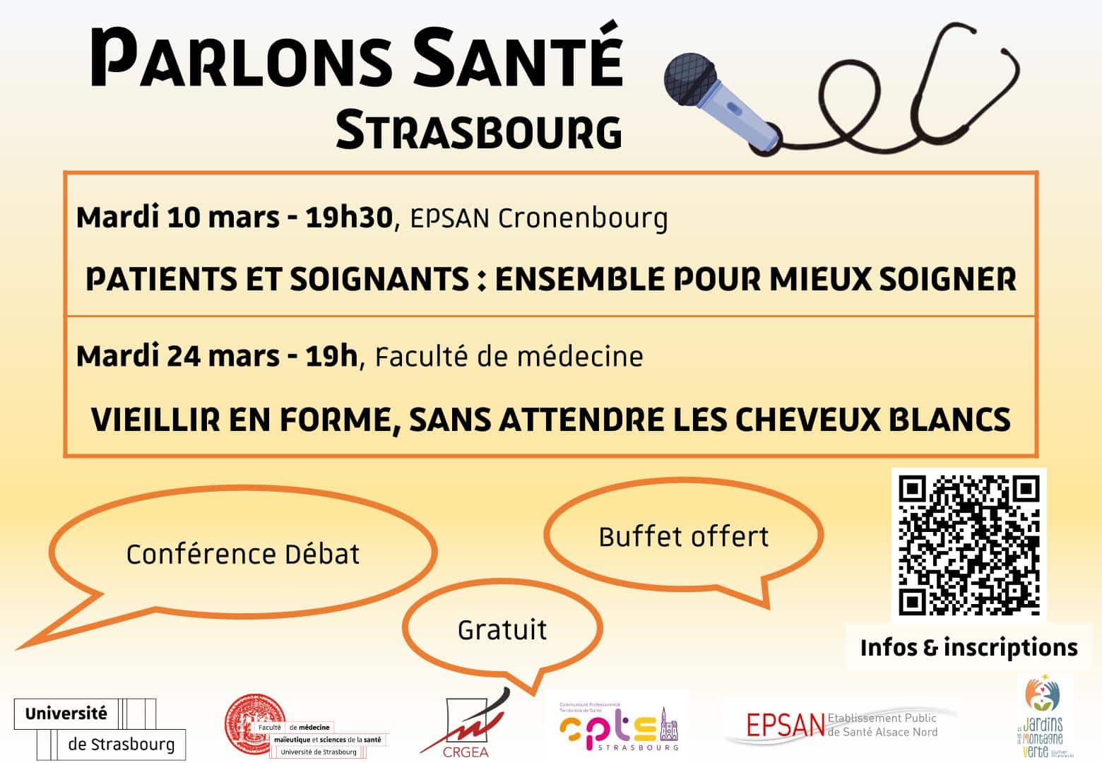 📢 La CPTS Strasbourg aura l’occasion d’intervenir le 24 mars lors de la soirée thématique parlons santé : « Vieillir en forme sans attendre les cheveux blancs ». .